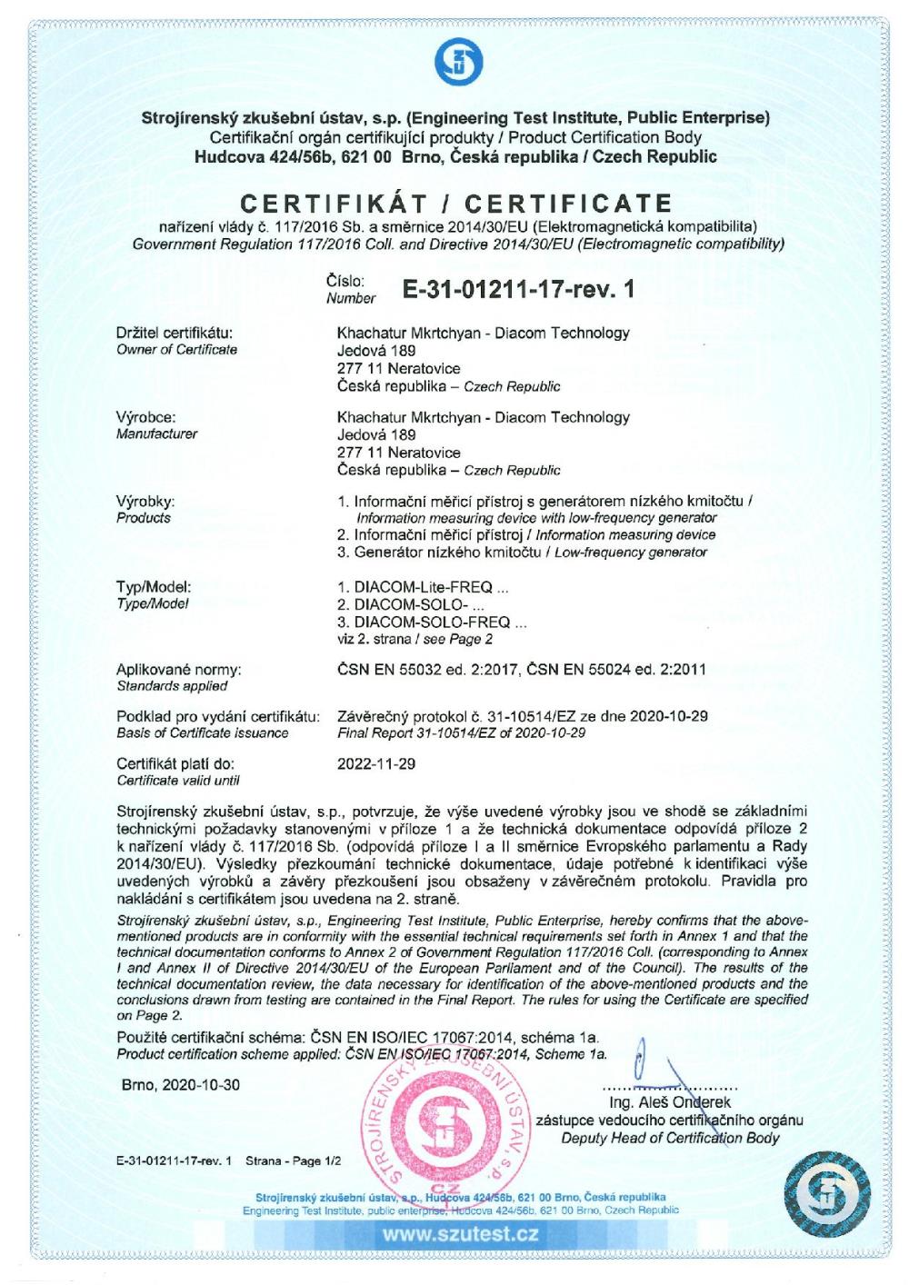 The DIACOM-SOLO-FREQ-PC is registered by certification bodies as a generator of low-precision electromagnetic waves. The device has passed all tests, including on electromagnetic safety, on safety for the environment, as well as on safety for people and animals. Externally, the device is a box with two LEDs on the sidebar, a USB connector, and a connector for connecting the cables FREQ. The device is made in a case of 135x70x24 mm. The device includes, in addition to the main unit, USB cable and cables FREQ. the device comes in reusable cardboard packaging. Inside the main unit are located: an electronic board with components - including a communication system with a personal computer, as well as a scheme for generating low-precision electromagnetic waves. The generator is designed to affect microorganisms and primarily the pathogenic microflora. This device can be used to clean various liquids from pathogens, bacteria and viruses. At the same time, electromagnetic frequencies generated by the device are selective and affect a certain group of microorganisms. To pair the device with the computer must be downloaded and installed on the computer appropriate driver. The device works with freely distributed software. Recommended software for working with the device - DIACOM-GENERATOR. The specifications of the device: The power source is the computer's USB port; Power voltage - 5 V; Current consumption - up to 300 mA; The range of generated frequencies is 1Hz-1MHz; Pairing speed - up to 1MHz. Solo-FRE-PS has the option of an interactive update that allows you to download new micro-programs automatically on your device. To update your device, you have to take two simple steps: Download and install Diacom-Updater's licensed software and device driver for this device from the official website. Once you've installed the Diacom-Updater software, you need to run it. It will automatically check for an update and, if it is available, it will load the micro program into the device. Diacom Technology® provides a 3-year warranty for this device.