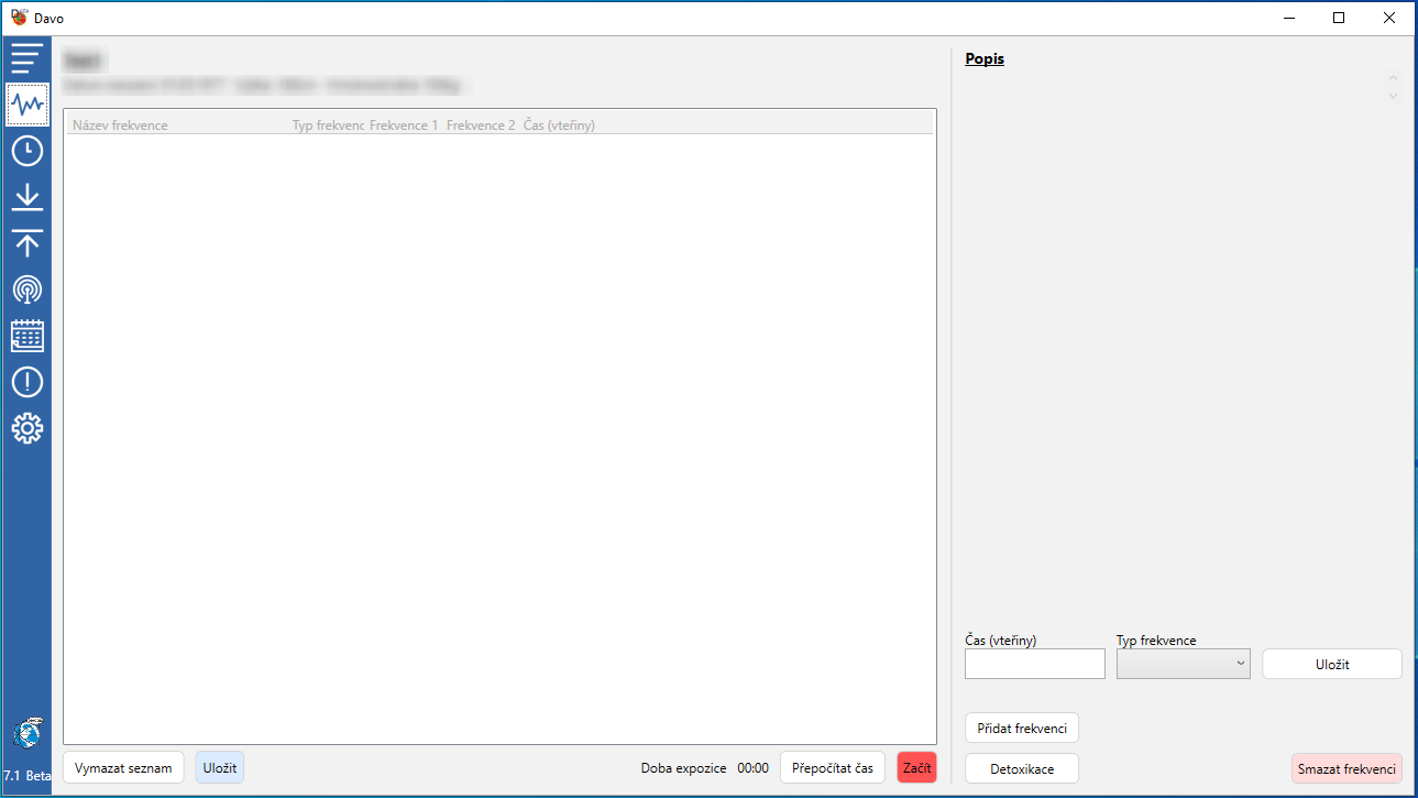 * Database of exposure sessions: The program allows you to maintain a database of exposure sessions, which are preset sets of frequencies. Each session can be saved in the database and recalled at any time from the list. This makes it easier to reuse certain frequency combinations for specific purposes.