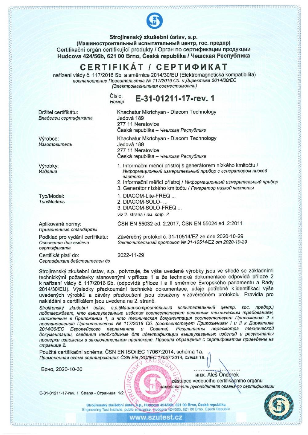 The DIACOM-SOLO-FREQ-PC is registered by certification bodies as a generator of low-precision electromagnetic waves. The device has passed all tests, including on electromagnetic safety, on safety for the environment, as well as on safety for people and animals. Externally, the device is a box with two LEDs on the sidebar, a USB connector, and a connector for connecting the cables FREQ. The device is made in a case of 135x70x24 mm. The device includes, in addition to the main unit, USB cable and cables FREQ. the device comes in reusable cardboard packaging. Inside the main unit are located: an electronic board with components - including a communication system with a personal computer, as well as a scheme for generating low-precision electromagnetic waves. The generator is designed to affect microorganisms and primarily the pathogenic microflora. This device can be used to clean various liquids from pathogens, bacteria and viruses. At the same time, electromagnetic frequencies generated by the device are selective and affect a certain group of microorganisms. To pair the device with the computer must be downloaded and installed on the computer appropriate driver. The device works with freely distributed software. Recommended software for working with the device - DIACOM-GENERATOR. The specifications of the device: The power source is the computer's USB port; Power voltage - 5 V; Current consumption - up to 300 mA; The range of generated frequencies is 1Hz-1MHz; Pairing speed - up to 1MHz. Solo-FRE-PS has the option of an interactive update that allows you to download new micro-programs automatically on your device. To update your device, you have to take two simple steps: Download and install Diacom-Updater's licensed software and device driver for this device from the official website. Once you've installed the Diacom-Updater software, you need to run it. It will automatically check for an update and, if it is available, it will load the micro program into the device. Diacom Technology® provides a 3-year warranty for this device.
